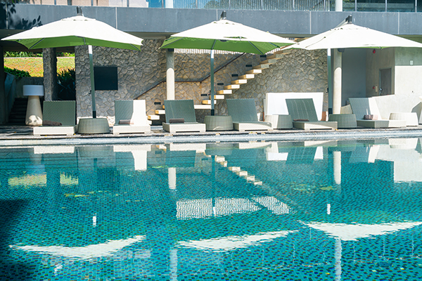 Chemie im Wasser des Swimmingpools ist kaum notwendig. Der Naturstein wird als exklusivstes und ausdrucksstärkstes Belags- und Bekleidungsmaterial seit der Antike für den Bau und zur Verschönerung von Bädern verwendet.