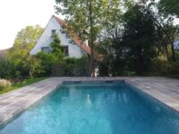 Die Vorteile zeigen sich ein deutlich durch den Wärmespeicher der Boden- und Wandauskleidungen aus Natursteinplatten z.B. Andeergranit und sorgen während der ganzen Saison für eine angenehme Wassertemperatur von 26 bis 30°C.