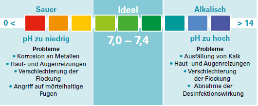 Allerdings kann der pH-Wert je nach Wasserhärte und Temperatur stark schwanken. Deshalb muss er regelmässig – mindestens ein mal wöchentlich – kontrolliert werden.