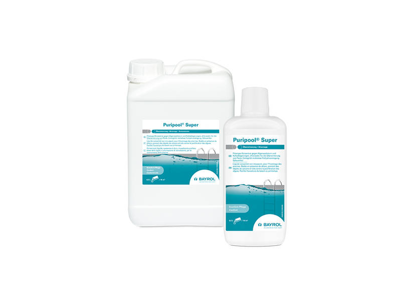 Puripool® Super enthält keine Schwermetalle wie z.B. Kupfersulfat, schäumt nicht, ist chlorstabil und pH-neutral. Mit Puripool® Super wird die Inbetriebnahme im Frühjahr einfacher, schneller und kostengünstiger.