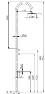 – Edelstahl *V2A*, geschliffen, Rohr Ø 60 mm |