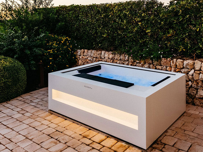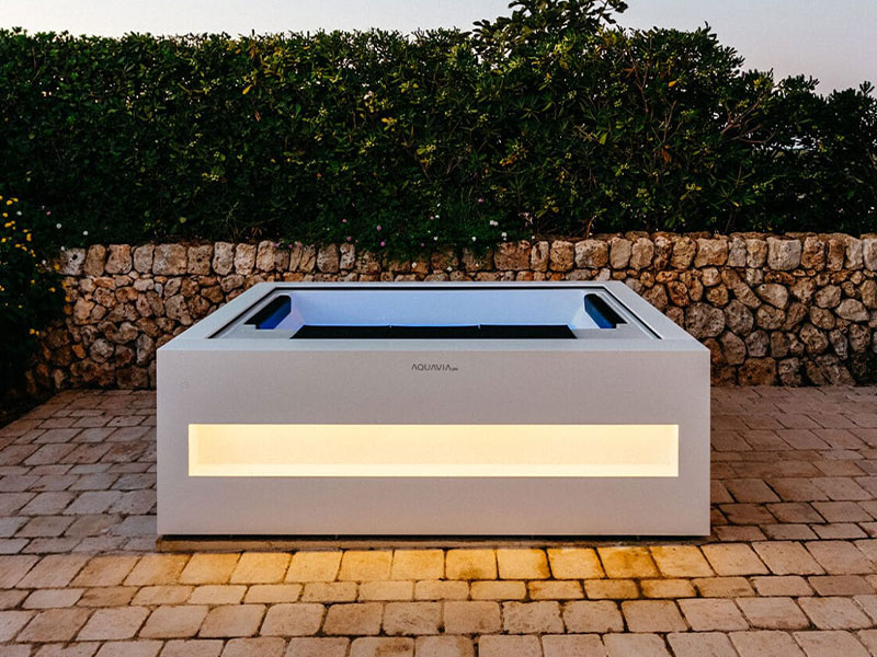 Das neue Home Spa von Aquavia ist ein attraktiver, minimalistischer Whirlpool für den Hydromassagegenuss zu zweit. Für Suites oder Hotelzimmer gehobener Klasse geeignet, aber auch für Ihr Zuhause. Trotz seiner kompakten Abmessungen (215x174x75) besticht er durch seine Vielseitigkeit, denn dank seines Designs kann man auf den beiden Liegeplätzen vier verschiedene Positionen einnehmen.