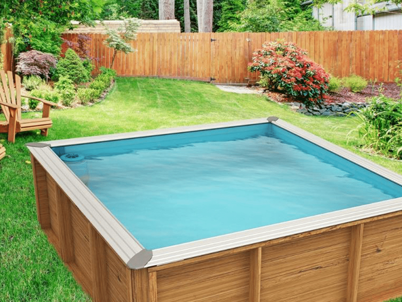 Der Kinder Holzpool fügt sich mit seiner quadratischen Form optimal in ein natürliches Gartenbild ein. Bei Bedarf kann der Kinder Holzpool mit einer Wassertiefe von 60 cm auch ganz oder teilweise in den Erdboden eingelassen werden. Die permanente Reinigung des Pools erfolgt über die mitgelieferte Einhänge-Kartuschenfilteranlage.